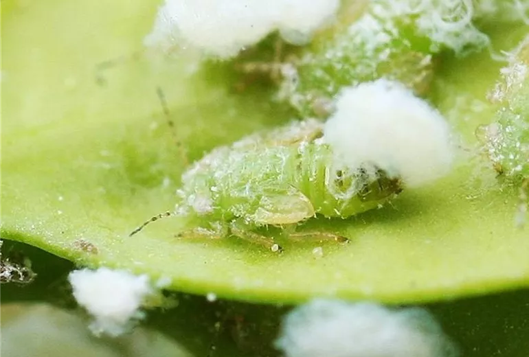 Ähnlich wie Wollläuse scheiden die Tiere schützende Wachsfäden aus. Bei starkem Befall kann es zur Honig- und Rußtaubildung kommen.