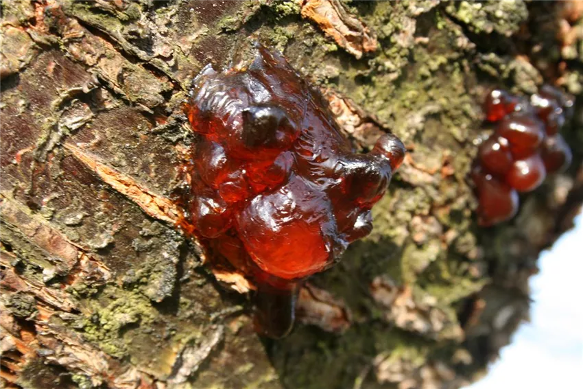 Gummifluß ist eine physiologische Reaktion der Pflanze, deren Ursache immer noch nicht genau geklärt ist. Feuchte Bodenverhältnisse, Verletzungen des Holzes und starker Rückschnitt fördern diese Erscheinung.