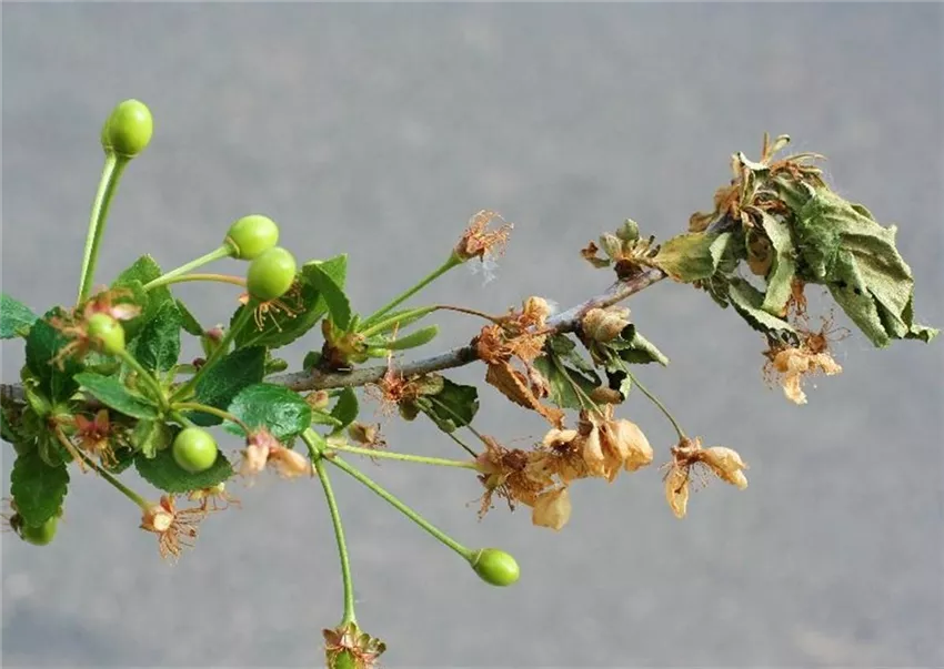 Monilia-Spitzendürrre an Sauerkirschen