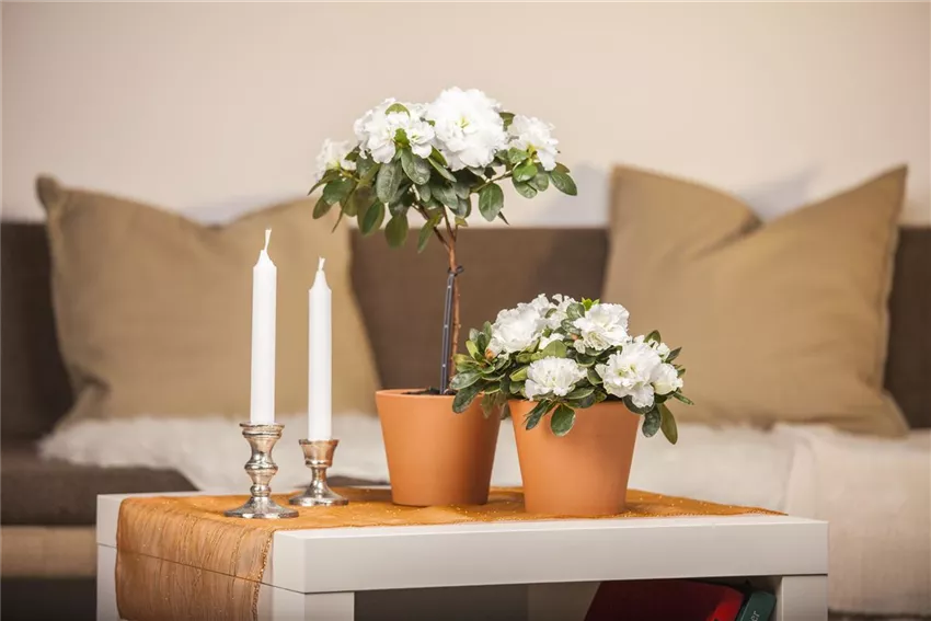 Von den pflanzlichen Mitbewohnern möchte ausgerechnet die Azalee im Zimmer viel trinken. Ihr Name bedeutet „trocken“, obwohl sie ohne genügend Wasser nicht existieren kann. Das soll man der pflanzlichen Diva bitte regelmäßig zuführen, und sie hätte es gern gleichbleibend feucht. Dabei bevorzugt sie kalkfreies Wasser; von Regenwasser ist sie geradezu begeistert. Auch zu den Wärmeverhältnissen hat sie klare Vorstellungen. Bei 18 Grad hat die Azalee im Zimmer ihre Wohlfühltemperatur. Ein Aufenthalt im Wintergarten gefällig? Da sagt sie nicht nein. Sie möchte hell stehen, aber nicht direkt der Sonne ausgesetzt werden. Alle Wünsche erfüllt? Die Belohnung erfolgt mit wundervollem Blütenzauber zwischen November und März.