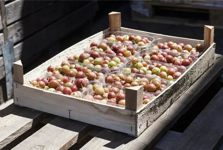Die Stachelbeeren gehören zu den Beerenarten, die Selbstbefruchter sind. Wenn allerdings eine reiche Ernte gewünscht wird, sind sowohl ausreichend Bienen als auch weitere Stachelbeersorten in der Nähe wichtig. Stachelbeeren schmecken frisch von Strauch, aber sie können auch vielseitig weiterverarbeitet werden. Es gibt sowohl Backrezepte als auch Desserts, die mit Stachelbeeren zubereitet werden. Andere Verwendungsmöglichkeiten sind das Einkochen von Kompott oder die Herstellung von leckeren Marmeladen. Der Erntezeitpunkt hängt davon ab, wie die Stachelbeere weiterverarbeitet werden soll. Als Kuchenbelag oder zum Einkochen eignen sich besonders die grünen Beeren, die noch nicht ganz fertig gewachsen sind und schon Ende Mai bis Anfang Juni gepflückt werden. Für die Zubereitung von Konfitüren und Gelees wartet man, bis die Früchte ihre endgültige Größe haben.