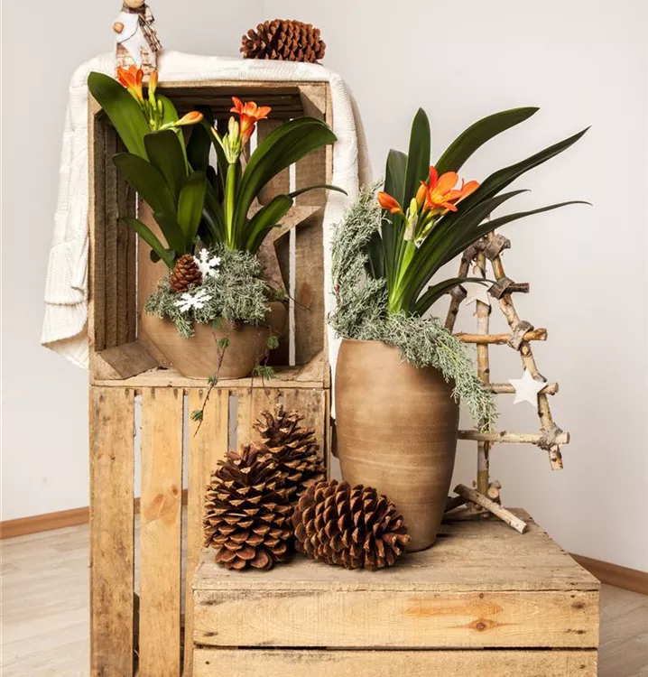 Die Zimmer-Clivie (Clivia miniata) ist eine sehr beliebte Kübelpflanze. Ihre dekorativen Blüten sind trichterförmig und erscheinen von Februar bis März. Verwenden Sie bevorzugt die spezielle Kübelpflanzenerde, denn sie verdichtet sich über längere Zeit nicht.
