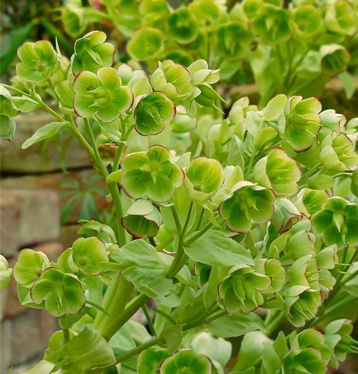Helleborus foetidus bildet glockenförmige, hellgrüne Blüten ab Februar.