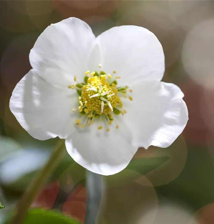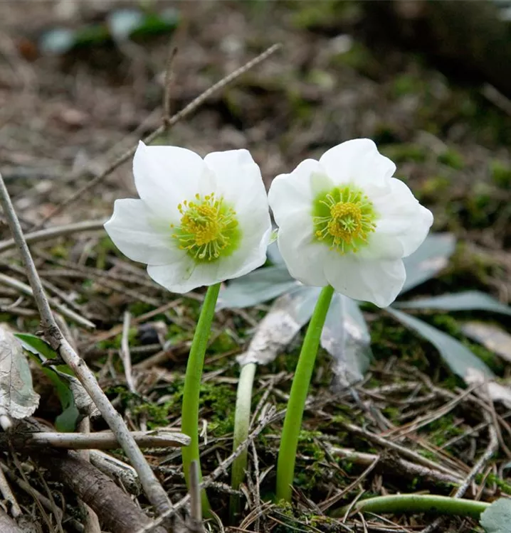 Helleborus niger bildet schalenförmige, weiße Blüten ab Dezember.