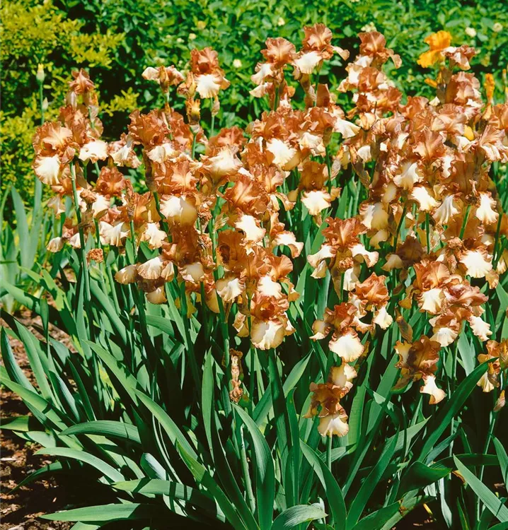 Die Hohe Bart-Iris (Iris x germanica) ist eine aufrechte, rhizombildende Staude, die, je nach Sorte, lippenförmige Blüten in verschiedenen Farben bildet. An einem sonnigen Standort mit durchlässigem, kalkhaltigem, nährstoffreichem Boden erreicht sie gewöhnlich eine Höhe von ca. 80 cm und wird ca. 40 cm breit. Die Hohe Bart-Iris ist gut frostverträglich.