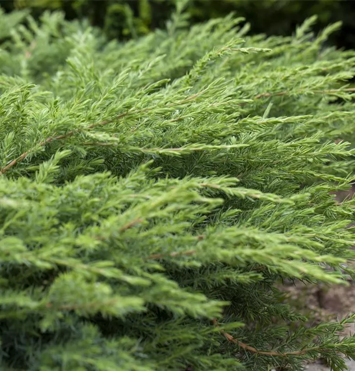 Der Sachalin-Kriechwacholder 'Schlager' ist immergrün. Seine Nadeln sind dunkelgrün, schuppenförmig.