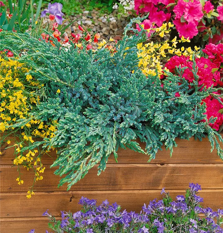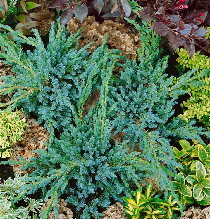 Der Chinesische Berg-Wacholder (Juniperus squamata) ist ein Gehölz, welches breit wächst und gewöhnlich eine Höhe von ca. 1,5 m und eine Breite von ca. 1,5 m erreicht. Dekorative blaue Zapfen zieren Juniperus squamata ab August. Dieses Gehölz ist gut frostverträglich. Er bevorzugt durchlässigen, nährstoffreichen Boden in sonniger bis halbschattiger windgeschützter Lage.
