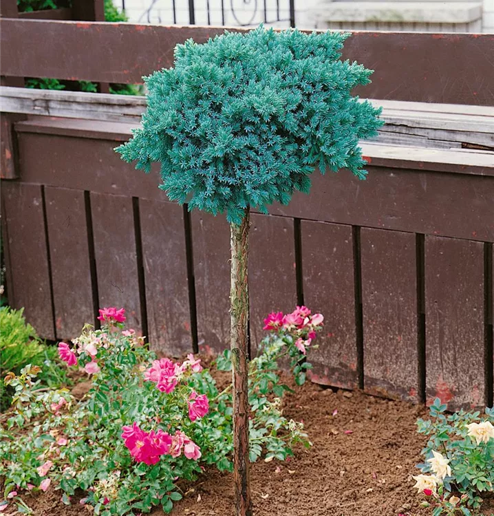 Besonders dekorativ sind die blauen Zapfen von Juniperus squamata. Diese erscheinen ab August.
