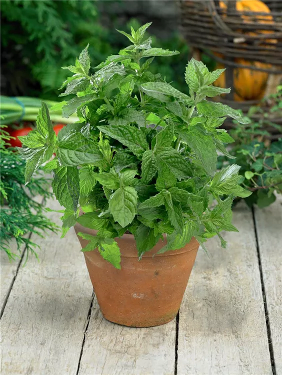 Die Minze 'Citaro' (Mentha x piperita) ist eine Kräuterpflanze mit einem erfrischenden Geschmack. Ihre mittelgrünen Blätter sind eiförmig und gezähnt. Für das optimale Wachstum der Minze 'Citaro' werden ein sonniger Standort und durchlässiger, nährstoffreicher Boden benötigt.