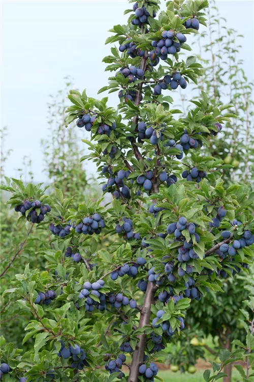 Die purpurvioletten Steinfrüchte haben einen süß-säuerlichen Geschmack. Reifezeit ab August.