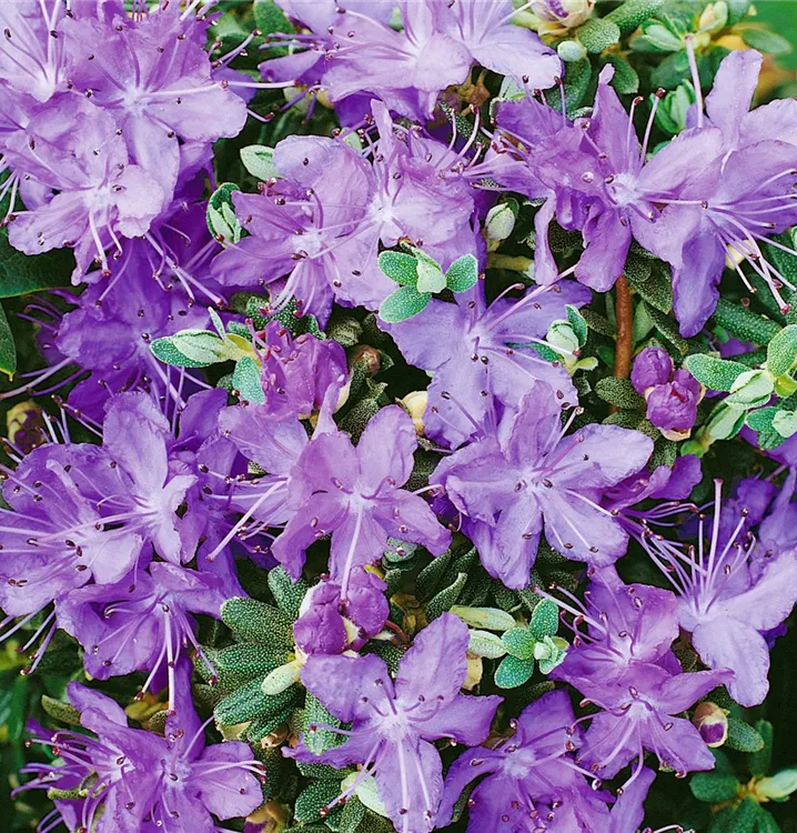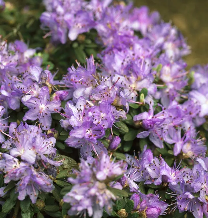 Der Kleinblättrige Rhododendron (Rhododendron impeditum) bringt von Ende April bis Mitte Mai ein wahres Blütenmeer in verschiedenen Farben (je nach Sorte) hervor. Dieses aufrecht, buschig, breit, dicht wachsende Gehölz erreicht gewöhnlich eine Höhe von 30 - 40 cm und eine Breite von 0,6 bis 1 m. Ein halbschattiger (bis schattiger) Standort und ein humoser, kalkfreier Boden schaffen optimale Bedingungen für ein gesundes Wachstum. Der Kleinblättrige Rhododendron ist gut frostverträglich.