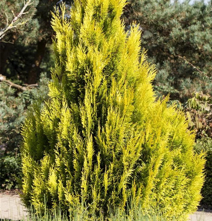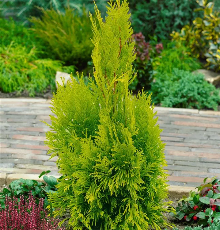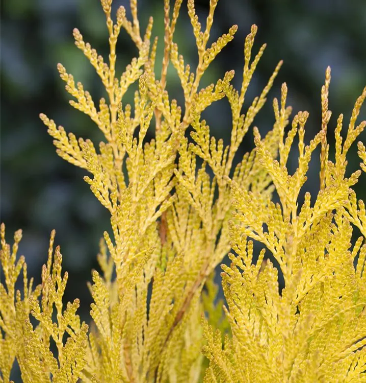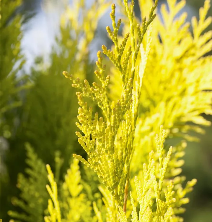 Sehr dekorativ. Der Große Lebensbaum '4ever' GOLDY®(s) ist immergrün. Seine Nadeln sind goldgelb, schuppenförmig.