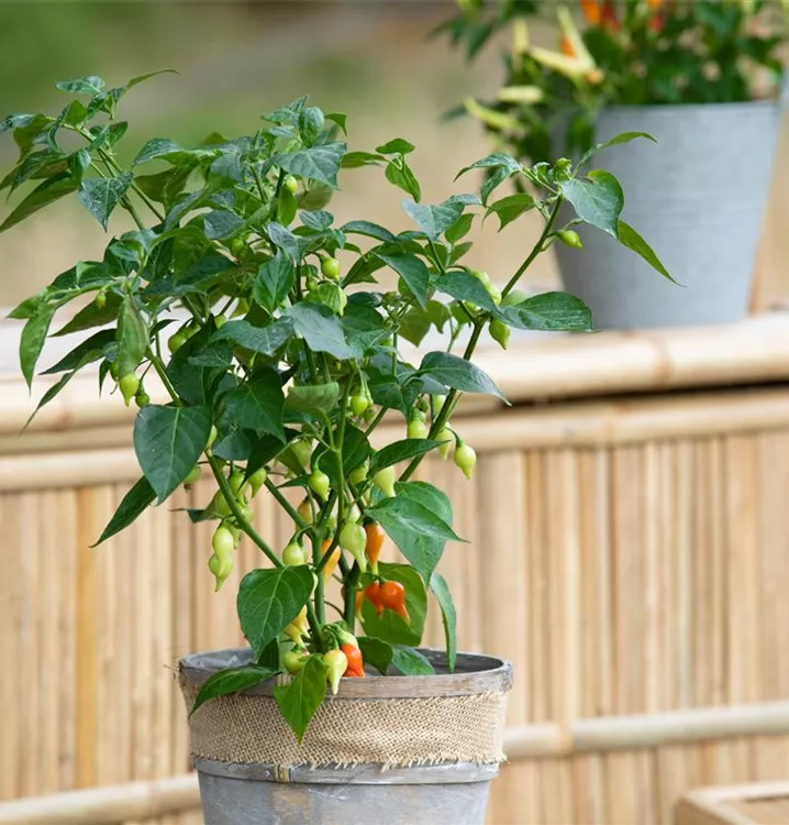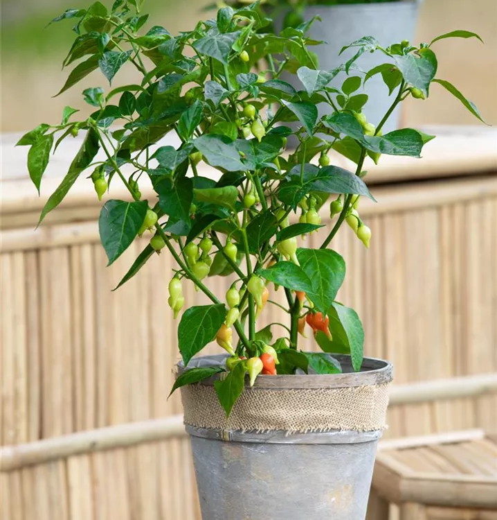 Der Tropfen-Chili (Capsicum chinense) bildet Früchte, die scharf, pikant schmecken und bereits ab August geerntet werden können. Für das optimale Wachstum des Tropfen-Chilis werden ein sonniger Standort und durchlässiger, nährstoffreicher Boden benötigt.