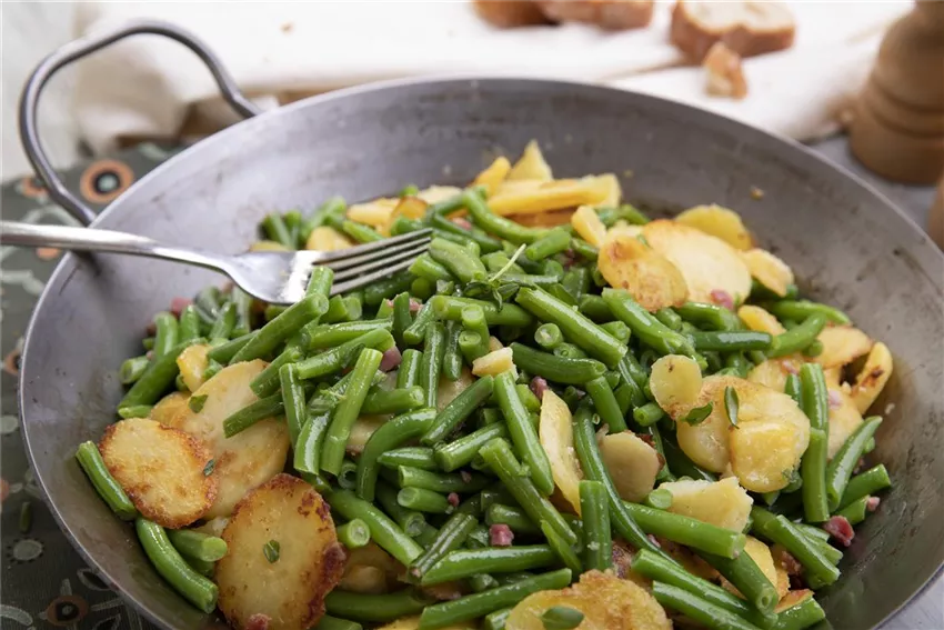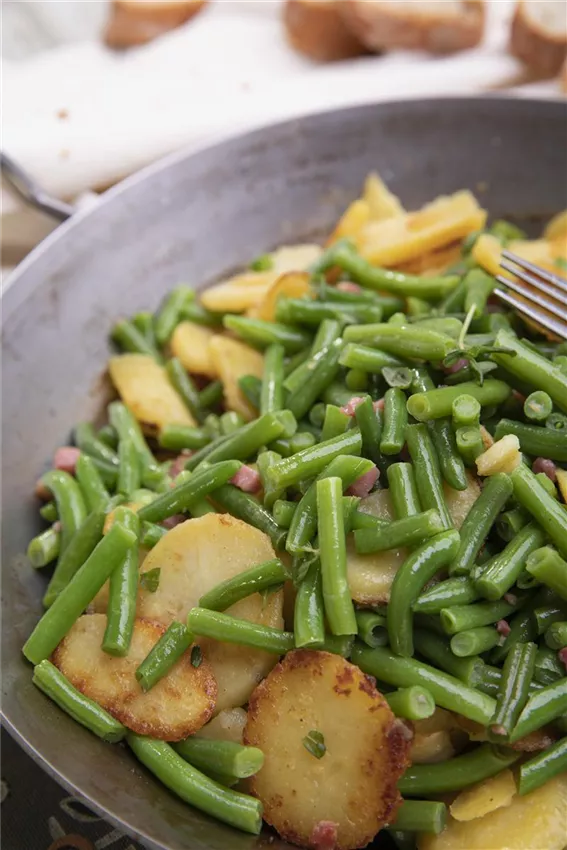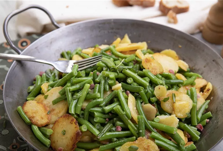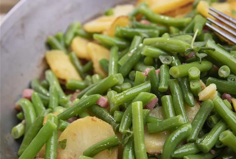 Bohnen-Speck-Pfanne mit Bohnenkraut