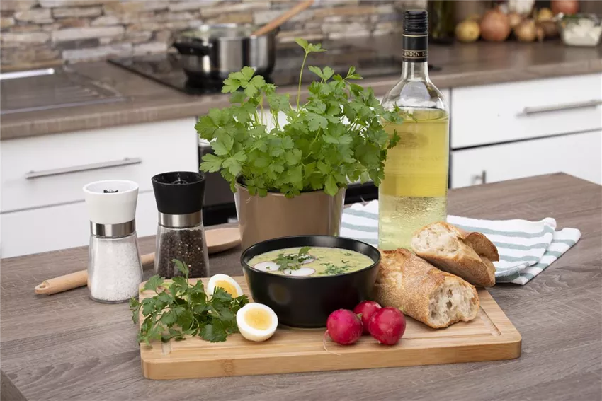 Petersilie ist eines der vielseitigsten Küchenkräuter. Sie lässt sich in fast jedes Gericht perfekt integrieren und sorgt für einen frischen Geschmack. Auch in einer Kräutersuppe darf Petersilie auf keinen Fall fehlen.