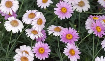 Die Strauchmargerite (Argyranthemum frutescens) ist eine beliebte Pflanze für den Balkon. Die unzähligen Blüten erscheinen, je nach Sorte, in verschiedenen Farben die ganze Saison hindurch. Ein sonniger Standort und ein durchlässiges Substrat werden bevorzugt.