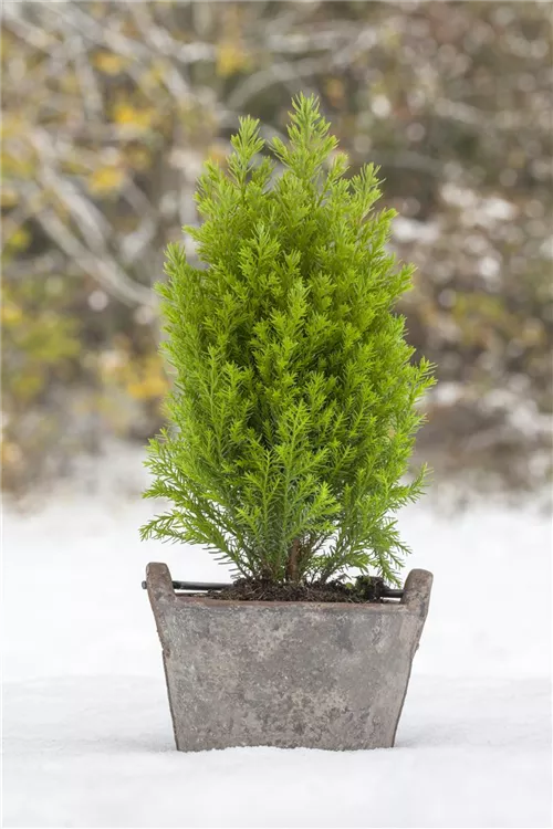 Die Gelbe Kegelzypresse 'Ellwood´s Gold' weist eine gute Frosthärte auf.