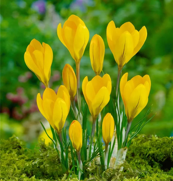 Der Frühlings-Krokus (Crocus vernus) blüht über Monate hinweg. Je nach Sorte, erscheinen die dekorativen Blüten in den Farben Weiß, Lila, Gelb und Blau. Bevorzugt wird ein sonniger bis halbschattiger Standort und eine durchlässige Erde.