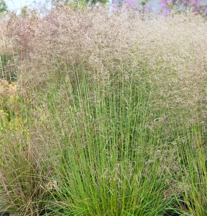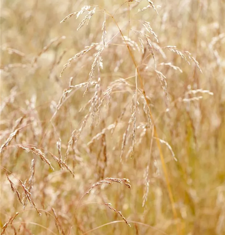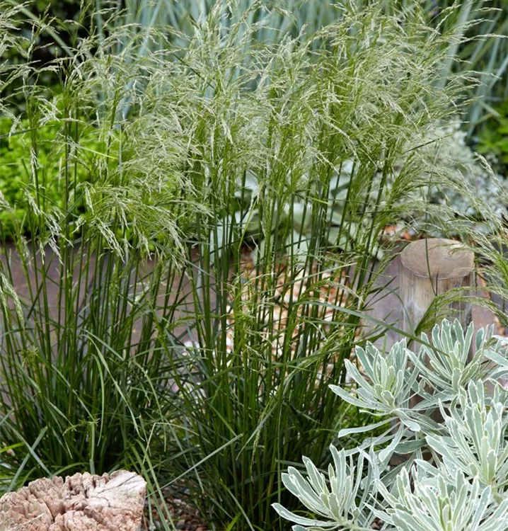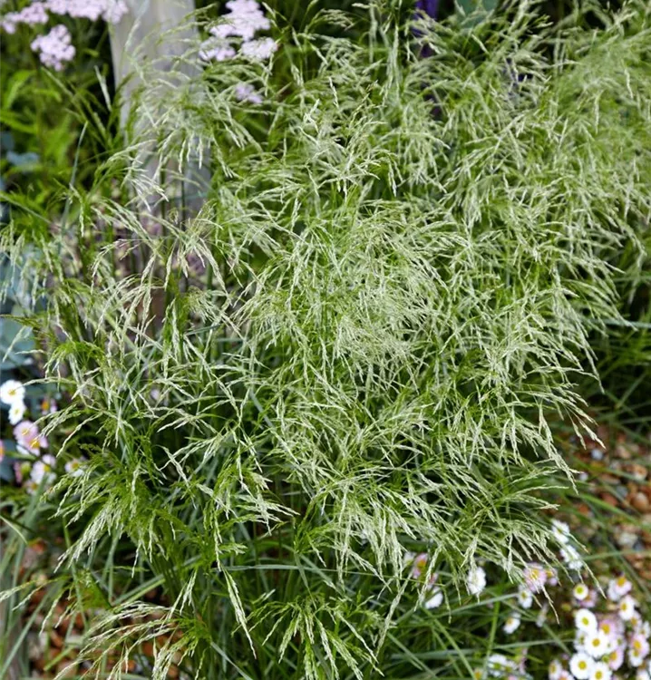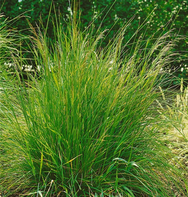 Die Rasen-Schmiele (Deschampsia cespitosa) ist mit ihrer mittelgrünen Blattfärbung ein dekoratives Gestaltungselement im Garten, welches sich an einem halbschattigen bis schattigen Standort mit einem möglichst durchlässigen, humosen Boden am wohlsten fühlt. Die grünen Blütenwedel schmücken die aufrecht und horstbildend wachsende Pflanze ab Sommer. Bei günstigen Bedingungen erreicht dieses winterharte Gras eine Höhe von ca. 60 cm und wird bis zu 60 cm breit.
