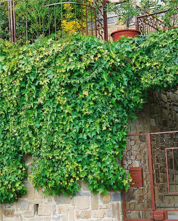 Gemeiner Efeu ist ein kriechend wachsendes Klettergehölz, welches eine Höhe von 20 - 30 cm und eine Breite von 3 - 5 m erreichen kann. In der Regel wächst er 30 - 50 cm pro Jahr.