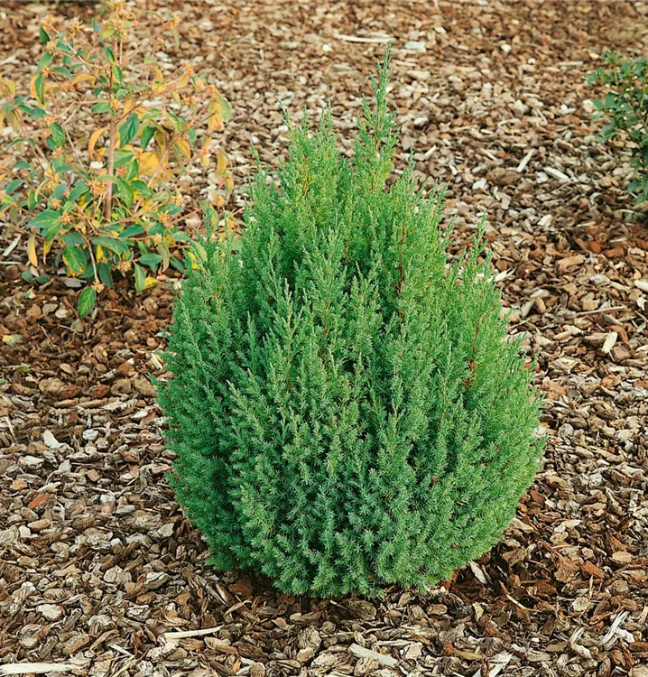 Der Blaue Kegel-Mooswacholder 'Stricta' weist eine gute Frosthärte auf.