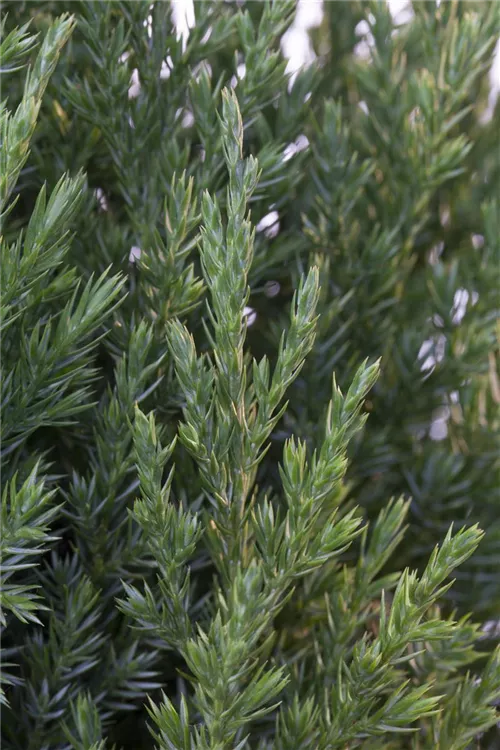 Der Blaue Kegel-Mooswacholder 'Stricta' ist immergrün. Seine Nadeln sind blau-grün.