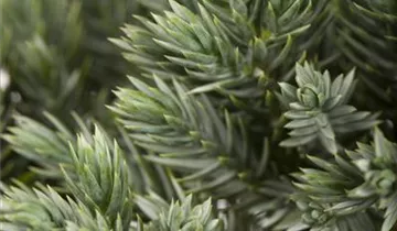 Der Blaue Zwerg-Wacholder 'Blue Star' ist immergrün. Seine Nadeln sind silberblau, stechend, schuppenförmig.