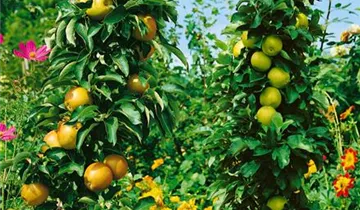Leckere Äpfel wachsen nicht nur an riesigen, knorrigen Bäumen, sie können auch auf Balkon und Terrasse reifen. Der Säulenapfel 'Ballerina'<sup>®</sup> ist wie geschaffen, wenn kein Garten vorhanden ist oder sich dort kein Platz für einen Obstbaum findet. Mit einem sonnigen bis halbschattigen Terrassenplatz gibt sich der Säulenapfel 'Ballerina' zufrieden und schon bald werden zwischen dichtem, grünen Laub die ersten Äpfel sichtbar. Die grünroten Früchte besitzen einen süßen, aromatischen Geschmack und können ab Oktober geerntet werden.