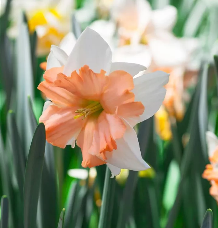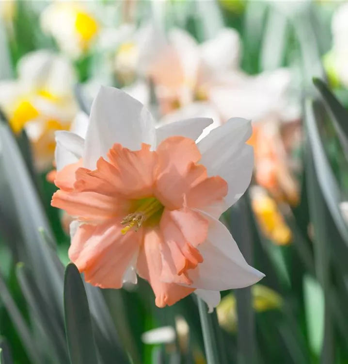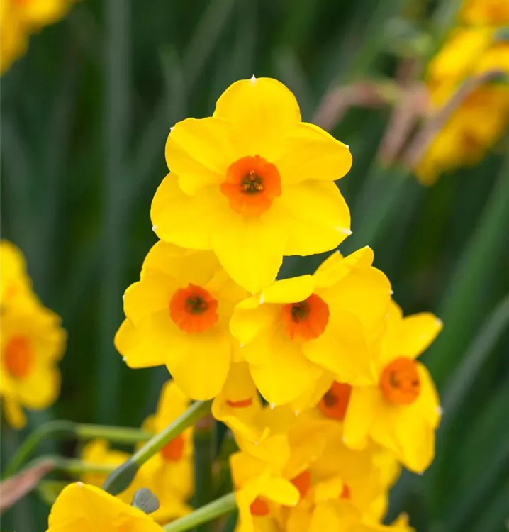 Die Narzisse (Narcissus) blüht über Monate hinweg. Je nach Sorte, erscheinen die dekorativen Blüten in den Farben Weiß, Gelb und Orange. Bevorzugt wird ein sonniger Standort und eine durchlässige Erde.