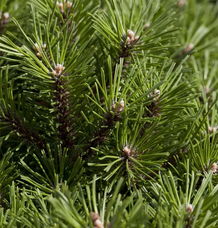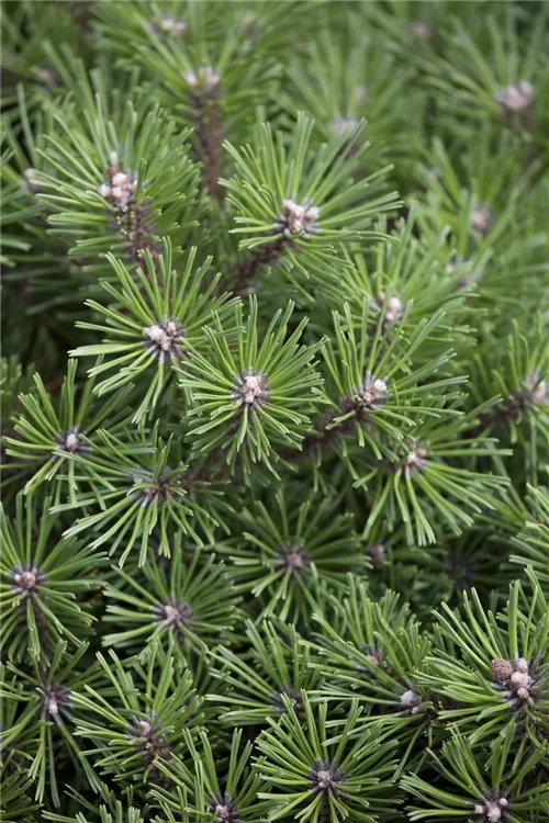 Die Berg-Kiefer 'Benjamin' ist immergrün. Ihre Nadeln sind mittelgrün.