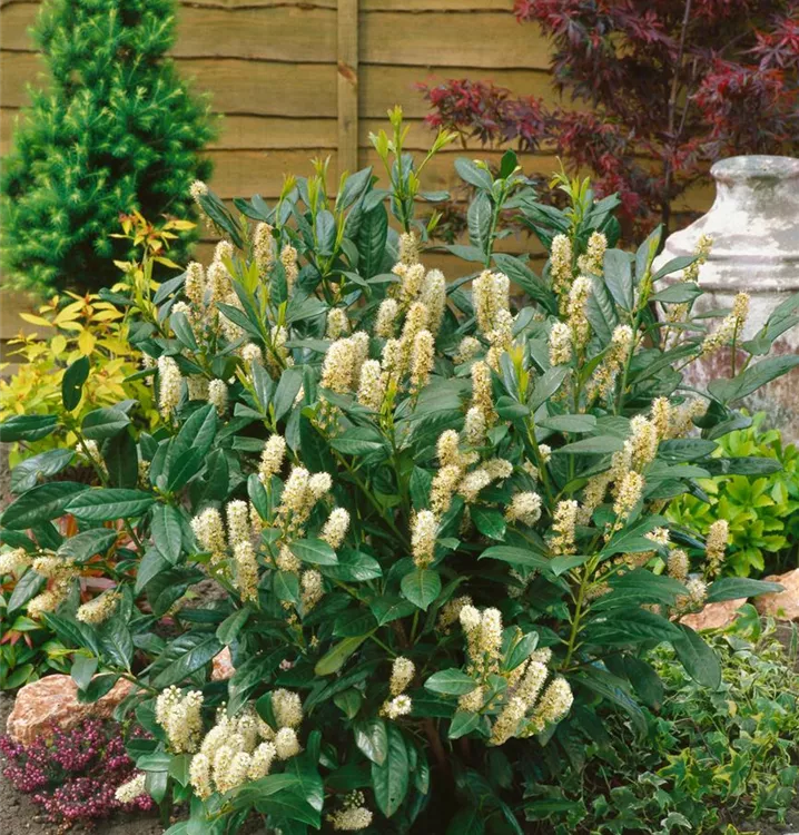 Die Lorbeerkirsche setzt schöne Akzente gemeinsam mit: