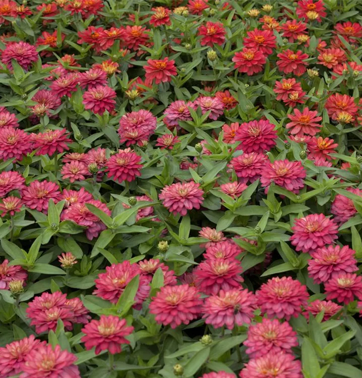 Zinnia elegans bildet während der gesamten Saison zahlreiche bunte Blüten.