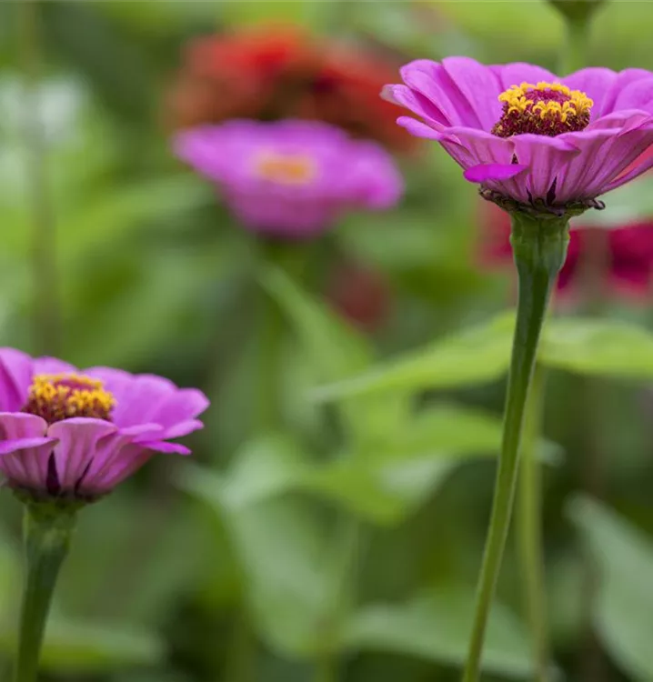 Die Zinnie (Zinnia elegans) ist eine beliebte Pflanze für den Balkon. Die unzähligen Blüten erscheinen, je nach Sorte, in verschiedenen Farben die ganze Saison hindurch. Ein sonniger Standort und ein durchlässiges Substrat werden bevorzugt.