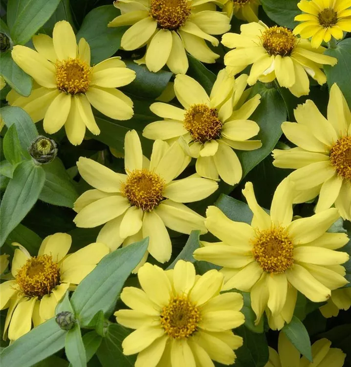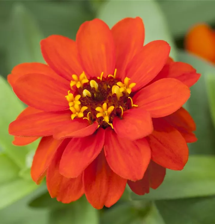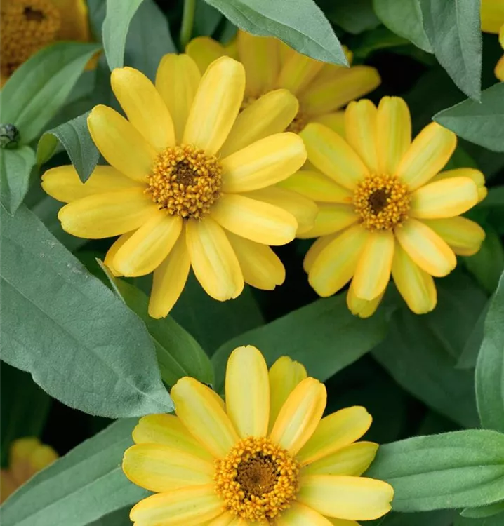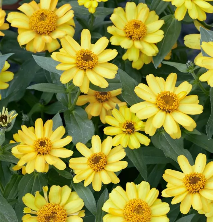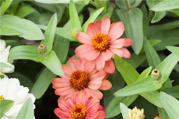 Die Haage-Zinnie 'Profusion' (Zinnia haageana) ist eine beliebte Pflanze für den Balkon. Die unzähligen Blüten erscheinen, je nach Sorte, in verschiedenen Farben die ganze Saison hindurch. Ein sonniger Standort und ein durchlässiges Substrat werden bevorzugt.